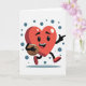 This cheerful Valentine’s Day card features a bold red heart brought to life as a fun character. The heart has black arms and red shoes and appears to be walking confidently across a bright white background. With a wide smile and lively eyes, it holds an American football tucked under one arm, while the other arm points forward as if leading the way. A soft shadow beneath its feet adds motion and depth. Teal-blue circles float behind the heart, adding extra charm and visual interest. The bright colors and friendly details give the card a joyful, upbeat feeling. It’s a lighthearted way to share love, energy, and a sporty twist on Valentine’s Day.