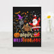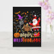 Tarjeta Happy Hallothanksmas Skeleton Pumpkin Turkey Santa