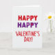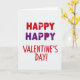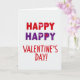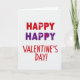 This cute Valentine's day card shows a sweet message saying "HAPPY HAPPY VALENTINE'S DAY!" in big, bold letters on a white background. The two "HAPPY" words are bright red and royal purple, with hearts replacing the 'A's, giving a cute touch. The rest of the message is in a fancy, handwritten style in passionate red. It feels warm and personal, full of joy and love. The colors pop against the white background, making the card simple yet very emotional. The text looks like it was hand-cut or embossed, adding a special, handmade feel. It's a lovely way to share Valentine's Day feelings ❤️💌🍫.