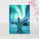 Tarjeta Happy Holidays Penguin Under Northern Lights