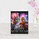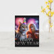 Tarjeta Happy New Year 2026 Funny Cat Bigfoot Party Art