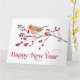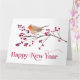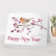 Elegant watercolor bird perched on a berry-covered tree branch, featuring modern typography. This Happy New Year greeting card is perfect for family, friends, and professional business clients. A timeless holiday card design ideal for personal or corporate New Year greetings on Zazzle.