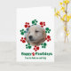 Feliz texto de Pawlidays con una foto de tu mascota dentro de una corona de pata roja y verde.