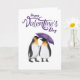 These two cute watercolor penguins are celebrating valentine's day and weathering the storm together under their purple umbrella.