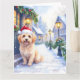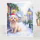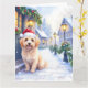 Tarjeta Havanese Snowy Village Walk Santa Hat Christmas