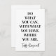 Una de las citas más inspiradoras de todos en Teddy: Theodore Roosevelt! Haz lo que puedas, con lo que tienes, donde estás.