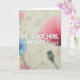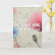 Designed with a soft-focus garden backdrop, this card pairs gentle spring colors with a tender, reverent mood 🌷. Creamy light fills the background while blurred hints of blush pink and leafy green drift like petals and stems in the distance. Centered in the middle, white uppercase text reads “HE IS NOT HERE, HE HAS” on the first line, with a small star icon just before the next line. Beneath it, “Risen” appears larger in flowing lettering, creating a graceful contrast to the firm, all-caps words above. The mix of crisp text over hazy florals feels like a quiet embrace between message and setting, as if the scene is leaning in close rather than shouting. In the upper right, a bright pink bloom glows softly, while a cooler blue flower shape rests on the left like a calm counterbalance 🐇. A small green bud sits near the lower right edge against the creamy background.