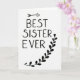 This card features a simple black-and-white design that puts the message front and center. On a white background, the words “BEST SISTER EVER” are written in black, with a casual hand-drawn look and slightly uneven lines. The text sits in the middle of the card, and a small black arrow above the word “BEST” points upward, like a little nudge of emphasis. Along the right side, a black vine curves from the upper-right down toward the lower-right corner, with leaf shapes spaced along a thin stem. At the top of the vine, one leaf is shaped like a small heart, adding a sweet touch ❤️. With just black ink on white, it feels direct and sincere, making it easy to say what you mean without overdoing it. It’s a meaningful way to show affection and appreciation for a sister who feels like a true friend 🥰. Hope it helps you share Valentine’s Day sentiments in a warm, simple way.