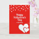 This card shows a deep crimson red background that immediately feels loving and festive ❤️. Across the top, small white hearts float downward in different sizes, like a gentle shower of love. In the center, the words “Happy Valentine’s Day” appear in smooth, flowing white letters that stand out clearly against the red. Just below, a thin white horizontal line separates the main greeting from the smaller message “to My Family,” also in white and centered. In the lower right corner, two larger white hearts overlap, with the smaller one tucked partly inside the bigger one, like a quiet hug. Soft shadowing under the hearts adds a little depth, and short dashed lines spread outward as if the love is reaching beyond the page. It feels meaningful because it’s not only about romance—it’s a simple way to show care and closeness to the people who matter most 🥰. Hope it helps you share Valentine’s Day feelings with the people you love.