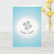 Designed with a centered white oval edged in soft gray, this card draws your eye with a gentle glow against a background that fades from light sky blue at the edges to near-white toward the middle. Inside the oval sits a simple four-part plant-like emblem in dove gray, with each rounded leaf shaped like a small heart, leaning inward as if in a quiet, affectionate huddle. The smooth shapes and muted tones create a calm, intimate look that can read like friendship or romance without needing any characters at all. Along the lower curve of the oval, a short Easter greeting is set on an arc, following the oval’s shape for a tender, welcoming flow 🌷. The lettering appears in a light sans-serif style and matches the same gray used in the heart-leaf motif, keeping everything softly coordinated. The overall layout feels balanced and airy, with plenty of open space that lets the symbol and message breathe 🐇. The pale blue-to-white gradient forms a subtle halo around the oval, making the gray outline and curved text stand out clearly.