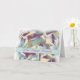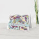 Esta tarjeta de felicitación tiene una acuarela digital abstracta en azul de océano y otros colores en colores pastel así como una raya con la expresión hebrea del cumpleaños: "Yom Huledet Sameach." Esta tarjeta es un artículo de envío elegante a enviar sus amados. Usted puede también hacer juegola con los pegatinas, envuelve, y sella.