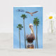 Hermoso Pelican con palmeras altas y una gaviota sobrevolando. Tarjeta de saludo para cualquier ocasión que puedas personalizar... con tus propias palabras de Elenne Boothe