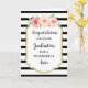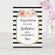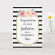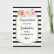 Felicidades por tu tarjeta de graduación para hermana con hermosas flores color agua rosada, patrón de franjas negras y blancas y verso sentimental.
