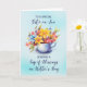 Honre a una cuñada maravillosa este Día de la Madre con una tarjeta tan encantadora y reflexiva como ella. Una delicada taza de té llena de flores alegres y coloridas se sienta en un suave fondo de color azul claro, con un tono suave y femenino. El elegante frente dice, "Mamá, enviando una copa de bendiciones en el día de la madre", en un escritura moderna, ofreciendo un toque dulce y espiritual. Dentro, un mensaje sincero expresa amor, gratitud y una bendición silenciosa, perfecta para reconocer la belleza que trae a tu familia y las vidas que toca.