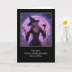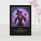 ¡Halloween con bruja y vino! Esta tarjeta Happy Halloween tiene una bella bruja que se ve un poco aburrida de pociones, hechizos y velas y se sumerge en el vino.