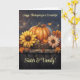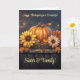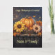 Flores, hojas y calabazas en un entorno exterior con una suave brisa. Una encantadora tarjeta de agradecimiento para tu hermana y su familia.