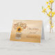 Los tonos suaves de amarillo, naranja y marrón crean una sobria tonalidad de colores que sirve de telón de fondo para una hermosa disposición floral. El interior comparte un simple mensaje para tu maravillosa hermana y su esposo.