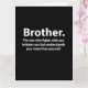 La tarjeta Hermano Tipografía Hermano diseño original de Nisha Prabhu. Muéstrale a tu hermano cuánto significa para ti con esta tarjeta llamativa, diseñada para hacerlo sonreír. Con tipografía moderna y audaz, y colores en blanco y negro, esta tarjeta captura la esencia de la hermandad de una manera divertida y sincera. Perfecta para cumpleaños, celebraciones o simplemente para decir "¡Te aprecio!"