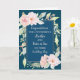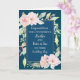 Felicidades por tu tarjeta del día de la boda para el cuñado con flores color de agua rosa bonito, fondo azul marino y verso sentimental.