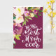 Hermoso ramo floral acuático, tarjeta del Día de la Madre. Características de la tarjeta, "a la mejor mamá de todos los tiempos", escritura blanca en negrita sobre fondo morado. La plantilla proporciona espacio para el mensaje de su personalizado dentro.