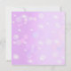 Un bonito chica con ojos rosados, flores y notas musicales, arte brillante. Platos florales morados y rosas. La parte trasera de la tarjeta está en blanco.