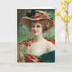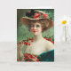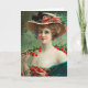 Tarjeta Hermosa dama de época, Gorra de flores y cerezas