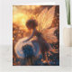 Esta encantadora imagen representa un hermoso y etéreo hadas de sol con alas resplandecientes, tocando suavemente un gran diente de león. La luz cálida y dorada crea un ambiente mágico y sereno.