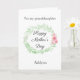 Un laurel de color verde agua y flores rosadas hermosa tarjeta nieta del Día de la Madre, que podrás personalizar fácilmente el frente con su nombre. El mensaje interno de esta tarjeta de Día de la Madre de nieta de bonito lee un mensaje sincero, que también puede personalizar si lo desea. En la parte trasera hay el mismo laurel de color verde agua con flores rosadas que permite poner los nombres del niño o de los niños o lo que sea que te guste. Un único recuerdo del Día de la Madre que es personalizado y seguro que será valorado.