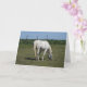 Tarjeta de caballo blanco hermoso parado en campo en blanco. Ya sea que le desees Feliz Cumpleaños a alguien o simplemente te mantengas en contacto y digas hola, esta tarjeta está en blanco para que puedas escribir tu propio mensaje dentro.