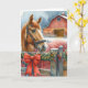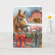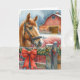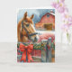 Tarjeta Hermoso caballo marrón en un Navidad festivo