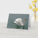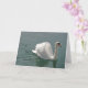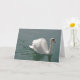 Un cisne bonito, blanco y orgulloso nadando en agua gris y reflejando carbón. La tarjeta de felicitación es personalizable con el cumpleaños o los deseos del Día de la Madre.