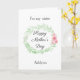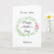 Una tarjeta de hermana para el Día de la Madre con acuarela verde y flores rosadas, que podrás personalizar fácilmente en la parte delantera con su nombre. El mensaje interior de esta bonita tarjeta del Día de la Madre para hermana contiene un mensaje sincero, que también puedes personalizar si lo deseas. La parte trasera tiene la mismaurel de acuarela verde con flores rosadas con un espacio para que pongas los nombres de los niños o lo que quieras. Un dulce recuerdo del Día de la Madre personalizado y seguro de ser atesorado.