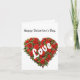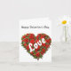 Esta elegante tarjeta Día de San Valentín presenta un corazón hecho de rosas rojas contra un fondo blanco con la palabra Amor. Simplemente hermoso.