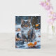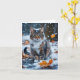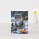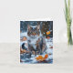 Tarjeta Hermoso gato atigrado gris otoño hojas en blanco