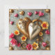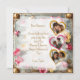Lindo template de foto personalizado steampunk para tarjeta del Día de San Valentín. Hermosas flores doradas y rosadas, corazones de metal y engranajes metálicos, la parte trasera tiene tres espacios para fotos en forma de corazón. También puedes editar el texto en el área de personalización.