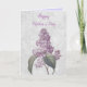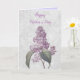 Esta tarjeta de felicitación cuenta con una hermosa ilustración de una flor de lila sobre un fondo gris jaspeado. También hay una felicitación del Día de la Madre en la parte frontal y en el interior de la tarjeta. Comprar como se muestra o personalizar con su propio saludo del Día de la Madre.