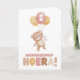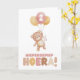 Vier een kinderfeestje op een lieve en speelse manier met deze zachte verjaardagskaart met teddybeer en ballonnen. De handgeschilderde illustratie in warme pastelkleuren straalt vrolijkheid en zachtheid uit, perfect voor jonge kinderen.