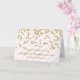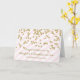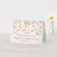 Felicidades por tu tarjeta del día de la boda para hija y nuera con rayas rosas y blancas y confetti purpurina de oro, y verso sentimental.