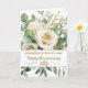 Celebre el amor de su hija y su yerno con este elegante diseño de aniversario con suaves rosas de marfil, exuberante vegetación de acuarelas y brillantes acentos dorados. El romántico ramo floral da un tono cálido y sincero, mientras que las bandas de bodas dorados simbolizan su compromiso duradero. Perfecto para honrar el vínculo especial que han construido juntos a lo largo de los años. Esta tarjeta es ideal para los padres que quieren expresar orgullo, alegría y amor en el aniversario de su hija en un estilo refinado y atemporal.