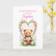 Envíe deseos de cumpleaños a su hija en su quinto cumpleaños de la manera más apropiada posible con esta preciosa tarjeta. Un oso de peluche, frente a un ramo de flores coloridas, presenta un corazón que exhibe a los 5 años. Hacer que su cumpleaños sea inolvidable con esta encantadora tarjeta. Una tarjeta de quinto cumpleaños para una hija.