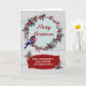 Feliz Navidad para su hija y su tarjeta familiar con una corona rústica, un pájaro y un fondo de madera vintage.