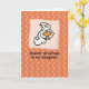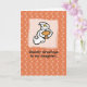 Desee una espeluznante Halloween a su hija con esta preciosa tarjeta fantasmal. Tiene una imagen de un fantasma sonriente sosteniendo una calabaza sobre un fondo punteado de naranja y blanco. Envía esto con mensajes espeluznantes y déjala disfrutar de Halloween.