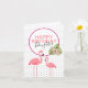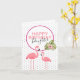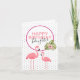 Una tarjeta tropical de cumpleaños para una mujer como tu hija, tía, madre o hermana. Un diseño contemporáneo con un moderno fondo polka punto, dos lindos flamencos rosas, follaje tropical y flores y texto que es fácil de personalizar.