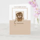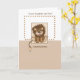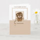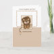 El lindo león está sentado sobre un cálido fondo marrón. Un borde de puntos rodea el mensaje "hijo" al nacer su recién nacido.
