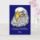 Si su hijo está luchando para su país y está teniendo un cumpleaños de fuera, este padre a su tarjeta del hijo es ideal. El DISEÑO - un cierre encima del ilustracion del vector de la cara de un águila calva, tiene las palabras el "feliz cumpleaños, el hijo" debajo de él y un mensaje significativo dentro, que pueden ser personalizados. MODIFIQÚELO para requisitos particulares - para cambiar el color de fondo y para añadir/plantillas de la cancelación, utilice el "personalizar él" botón.