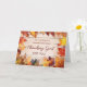 Comparte gratitud sincera este día de Acción de Gracias con una tarjeta para un hijo y su familia, diseñada con vibrantes hojas de otoño montadas contra madera rústica. Las primeras palabras, "A un Maravilloso Hijo y a su familia agradeciendo a Dios por ti", crean una manera cálida y llena de fe para celebrar el amor de la familia y las bendiciones de la temporada.