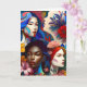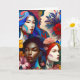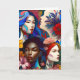 Gran tarjeta de felicitación inspiradora para uso personal o empresarial para promover la igualdad de las mujeres. Un collage abstracto diverso de mujeres y el texto, "IWD" y "Día Internacional de la Mujer". El 8 de marzo es el Día Internacional de la Mujer. El interior de la tarjeta tiene una breve historia sobre el Día Internacional de la Mujer.