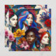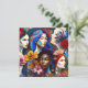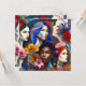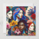 Gran tarjeta de felicitación inspiradora para uso personal o empresas para promover la igualdad de las mujeres. Un diverso collage abstracto de mujeres y el texto, "IWD" y "Día Internacional de la Mujer". El 8 de marzo es el Día Internacional de la Mujer. La parte trasera de la tarjeta tiene una historia corta en el Día Internacional de la Mujer.