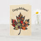 Esta hermosa tarjeta presenta una ilustración de una hoja de arce de arte popular con un mensaje editable encima. En el interior hay un mensaje editable. Puedes usarla como tarjeta de felicitación por convertirse en ciudadano canadiense, tarjeta de cumpleaños o como tarjeta para cualquier ocasión. Puedes cambiar los mensajes o eliminarlos para crear una tarjeta en blanco. También puedes cambiar los colores del fondo en el interior y en la parte posterior. Crédito artístico: Lynda McDaniel-Smith.