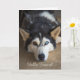 Cada amante del perro apreciará esta carta, que representa a un Husky Siberiano con un ojo marrón y un ojo azul-blanco. El Husky está en reposo con la cabeza abajo, dando una mirada muy conmovedora a los ojos del receptor. La personalización completa está disponible en el texto. Fotografía y diseño ©Vann-Horn Creative Photo & Designs.